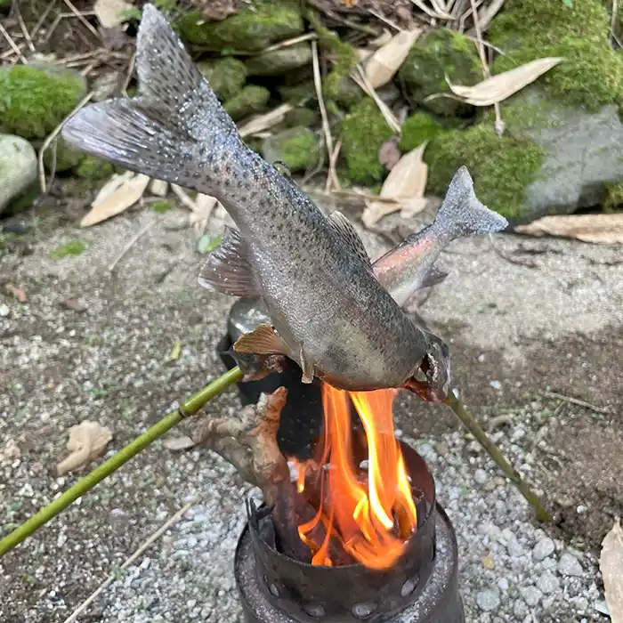 釣れた川魚をその場で食べる!町内には川遊びのガイドさんも